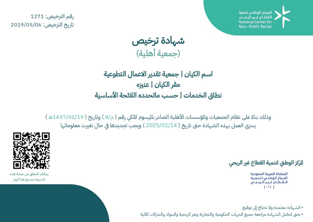 جمعية تقدير الأعمال التطوعية بمحافظة عنيزة